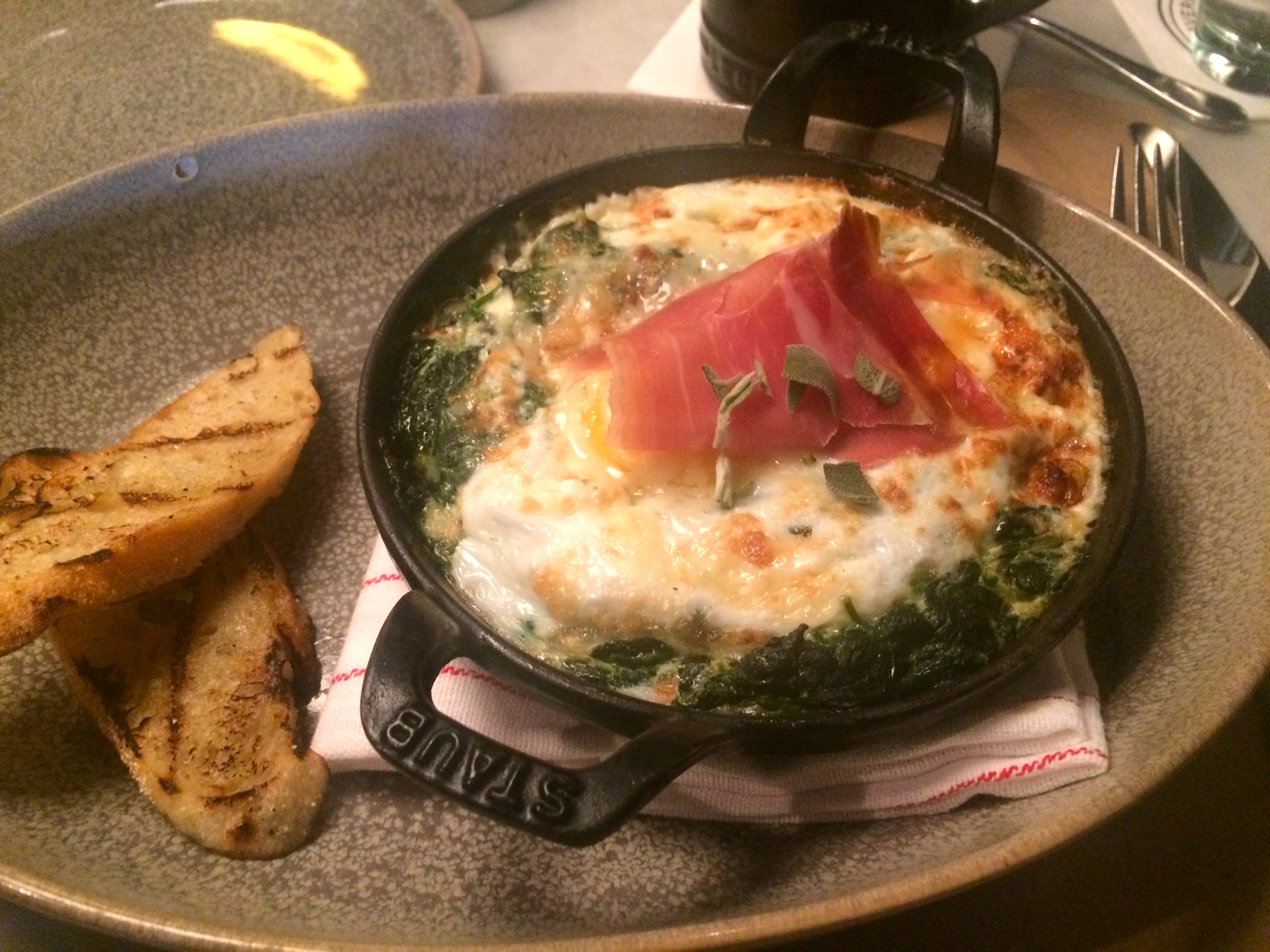 Pictured above is my brunch choice of cast-iron baked farm eggs. This dish was the perfect combination of salty ham, spinach, and Gruyere cheese. Accompanied with side toasts this gooey, hot (temperature wise: extremely!) mess did not disappoint. However, as I ate I couldn’t help but notice a fried-duck egg sandwich pass me by. Topped with avocado, bacon and garlic sauce this item immediately made it to the top of my list for items to try next. The chicken sandwich and smoked salmon benedict also sounded mind-blowing. With helpful and fast service this brunch checked a lot of boxes.