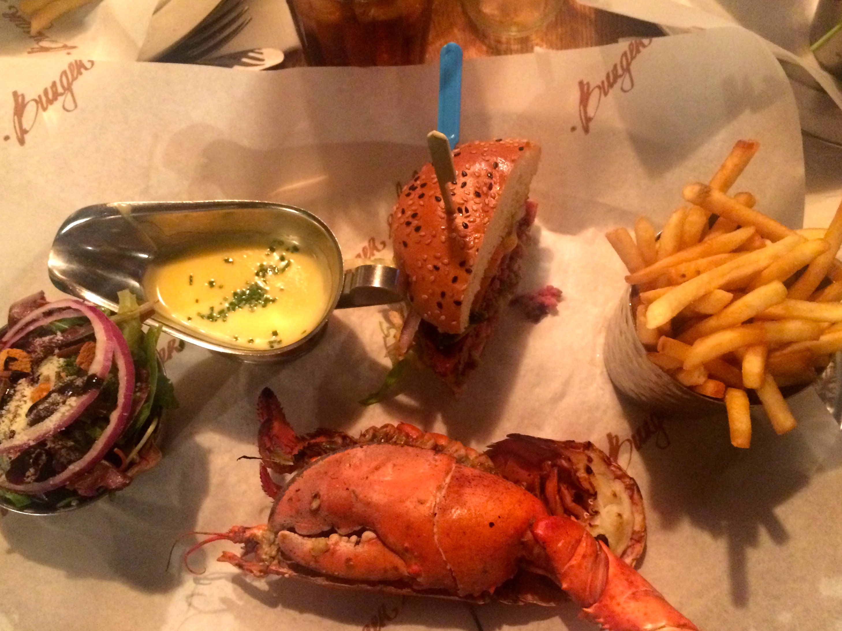 It’s possible to split half a lobster and half a burger if you have someone else at the table wanting to do the same thing. Wanting to try both, my order was the half-burger (fully loaded with bacon and cheese – you want to get the most for your money, right?), and grilled half-lobster. The lobster was amazingly tasty. Maybe only a tad overcooked but the spices were fantastic and the time it took work for the food made it even better. Cue lobster revelation! The burger was great too, but nothing to write home about. The true experience came from the mix of the two. Together the meal was huge, and to say I went home full would be an understatement! Luckily I had planned ahead and ate a very small lunch hours before the meal so I was ready for action.*