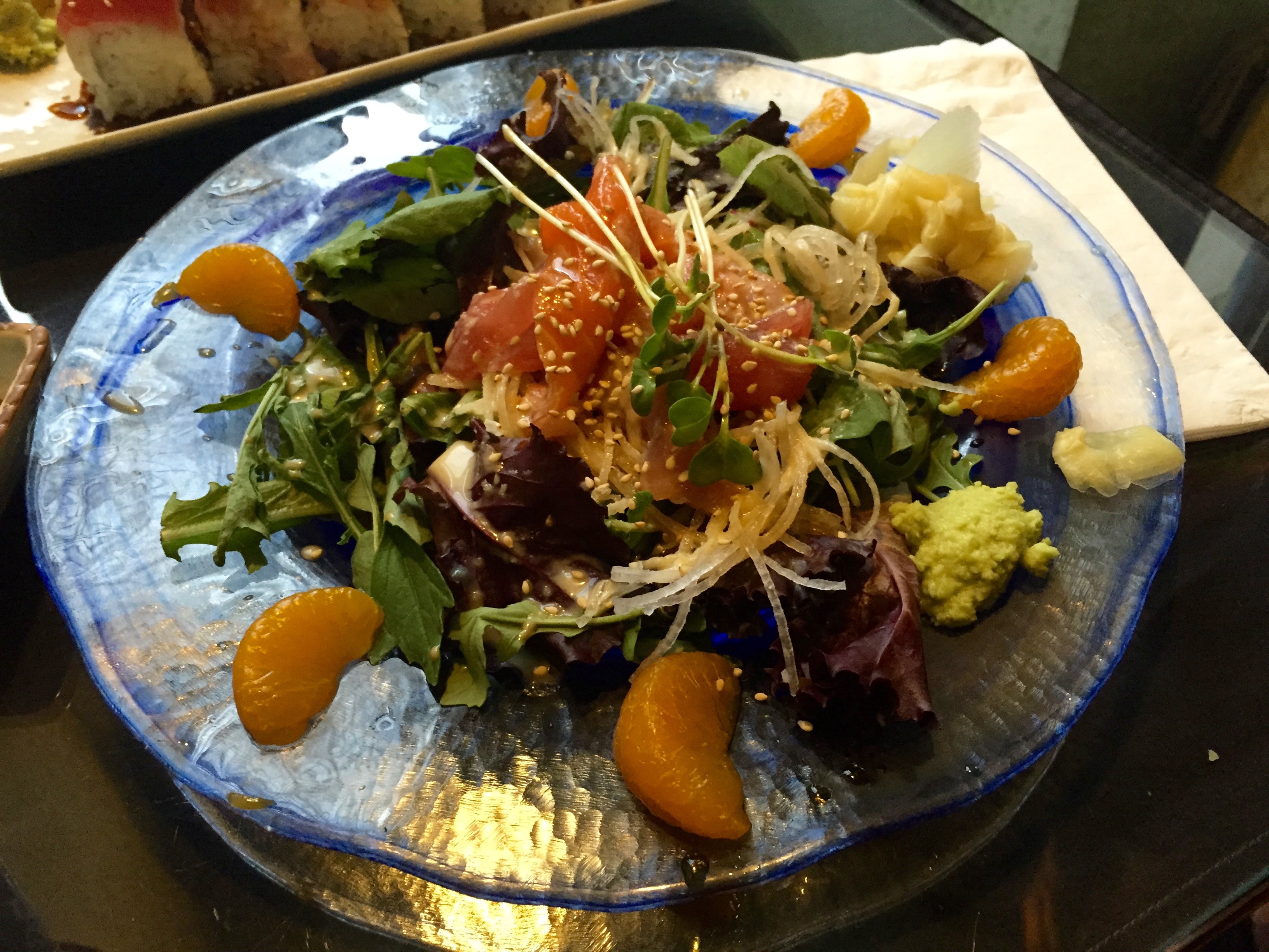 I almost always order Chirashi. I’m a sashimi kind of gal and the Chirashi gives me a good variety of sashimi cut fish with the tasty sushi rice. Due to my hunger-level however, I decided to get my sashimi fix by ordering the sashimi salad appetizer and accompanying that with the ‘Beth knows best’ roll.