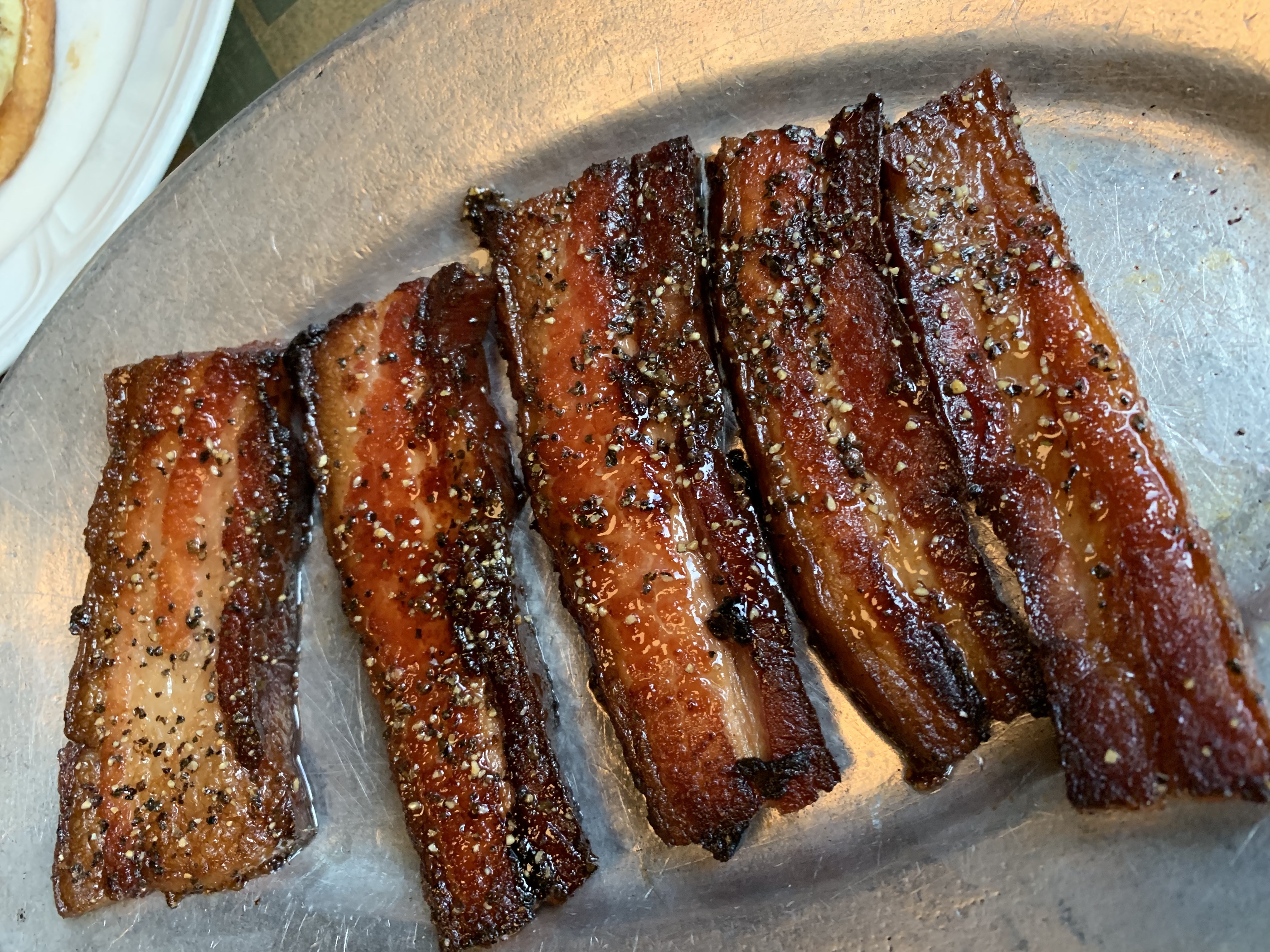 If you’re feeling particularly open to heart disease, I suggest you order the entire side of bacon which for the price tag of $18 gives you 5 life changing slices. (No judgement if that’s what you ordered – we did and the photo proof is below).