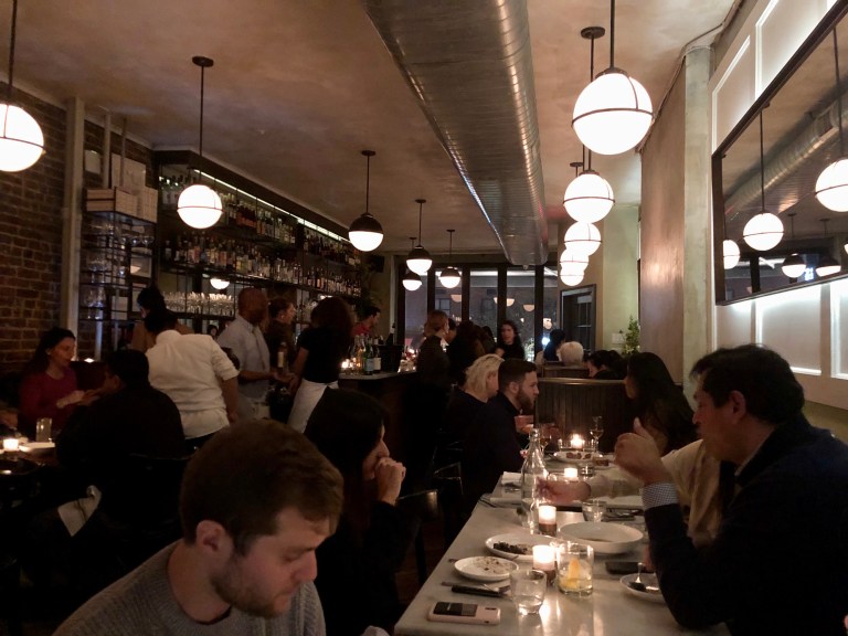 The restaurant, a modern day bistro equipped with brick walls, marble tables and soft wood, was at times hectic throughout the dinner service as multiple waiters carrying shareable small plates, wines, and water refills gracefully dodged one another as patrons continued to enter the space in a never-ending fashion. The sound ebbed and flowed throughout the night along with the capacity and alcohol consumption.