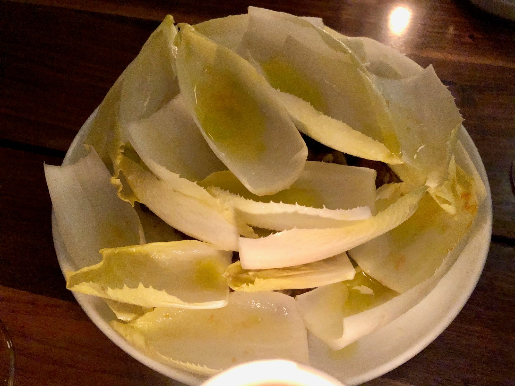 Dishes that ordinarily would have been skipped like the endive salad were a standout. The crunchy leaves were splashed with an oily dressing and complemented with rich and full flavors of walnut, anchovy and cheese. A former endive-hater at our table was immediately a convert after just one bite.