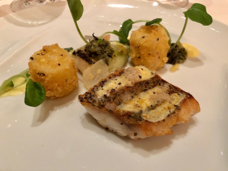 The black sea bass in course number two was lukewarm in temperature in a way that didn’t feel right. Fish can be cold and fish can be hot but to be lukewarm seems an injustice to the flavors and the fish. The russet potato confit accompaniment was a delicious bite, but all fried potato is a friend of mine so really what’s the accomplishment here? At the end, our plates sat empty on the table for what felt like hours (reality check Nicole, probably 15 mins max).