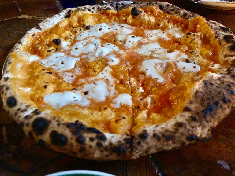 The Hellboy (pictured above) has just about everything you’d want from a pizza. It’s a pie with fresh mozzarella, Italian tomatoes, spicy Berkshire soppressata, Parmigiano Reggiano and Mike’s Hot Honey. It is quite possible the most perfect combination of ingredients to co-exist together on a pie. When spicy meats and honey are combined, sparks tend to fly. Add onto this the greatness that is the pillowy, chewy, delectable dough that forms the basis of these Neapolitan pies and you have yourself a winner.